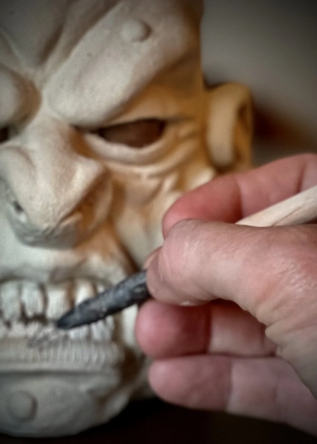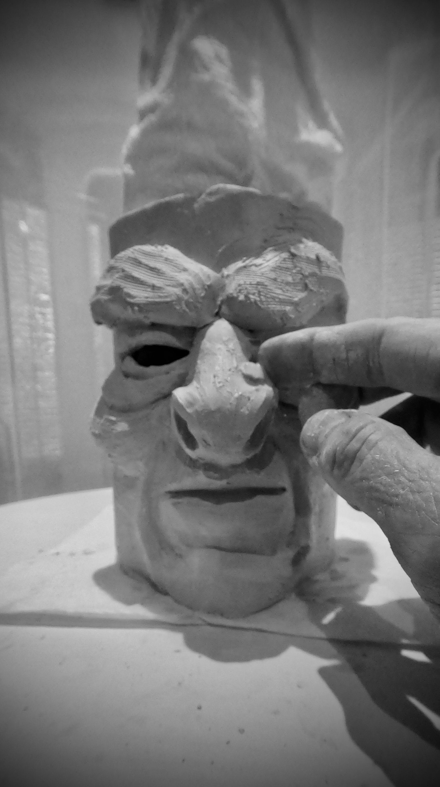 Invigorated by his success, the Wonderful Numbskull once again put his hands to clay. As he labored to add more creatures to his world, he soon realized that his Coffee Goblin success would not be so easily replicated. Exasperated, he discarded attempt after attempt, failure after failure. As his frustration made its way into his hand and from his hands into clay, a disapproving scowl emerged from the blank cylinder in front of him, and thus the first Curmudgeon Mug was born. Creative obsession led to more Curmudgeons, each one as cantankerous as the last, grumbling things like “back in my day, we didn’t need fancy $7 coffee.”