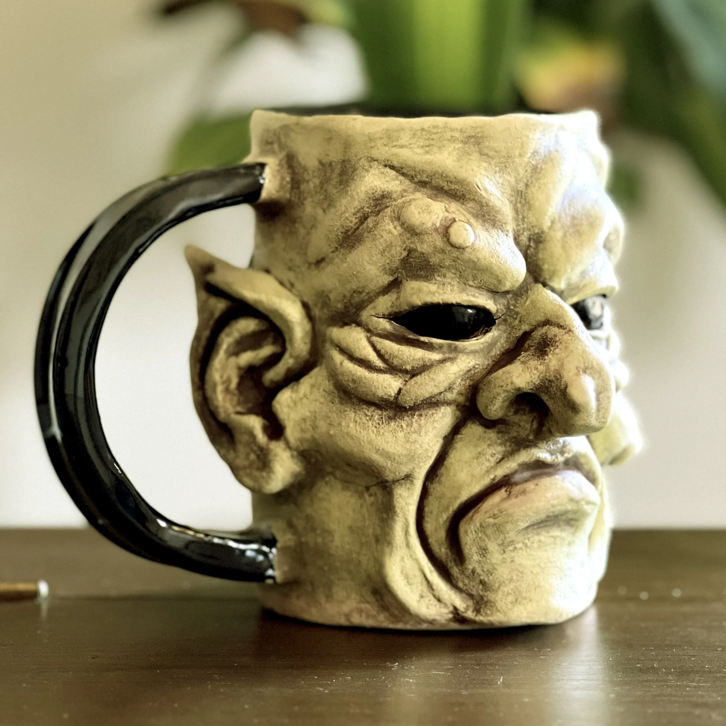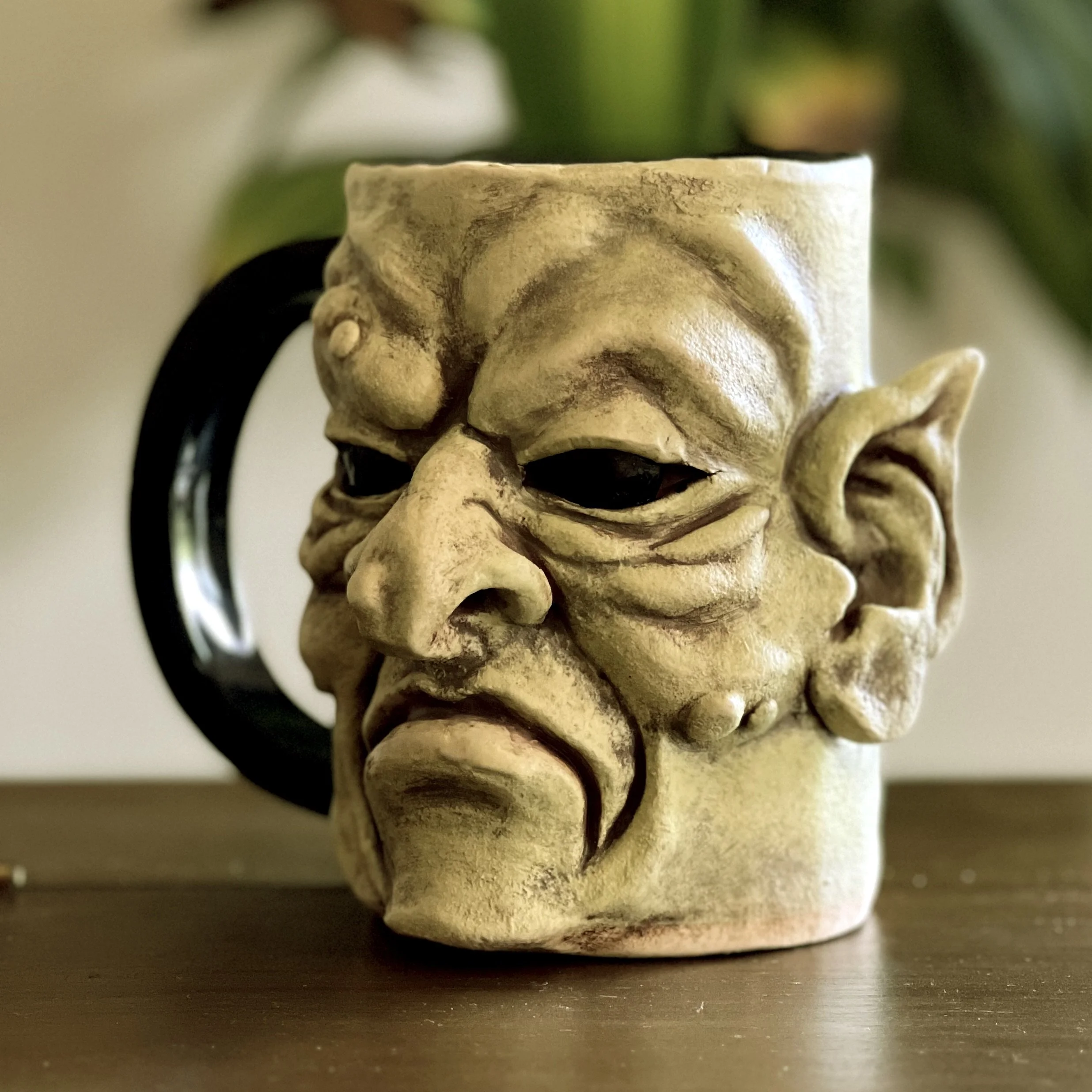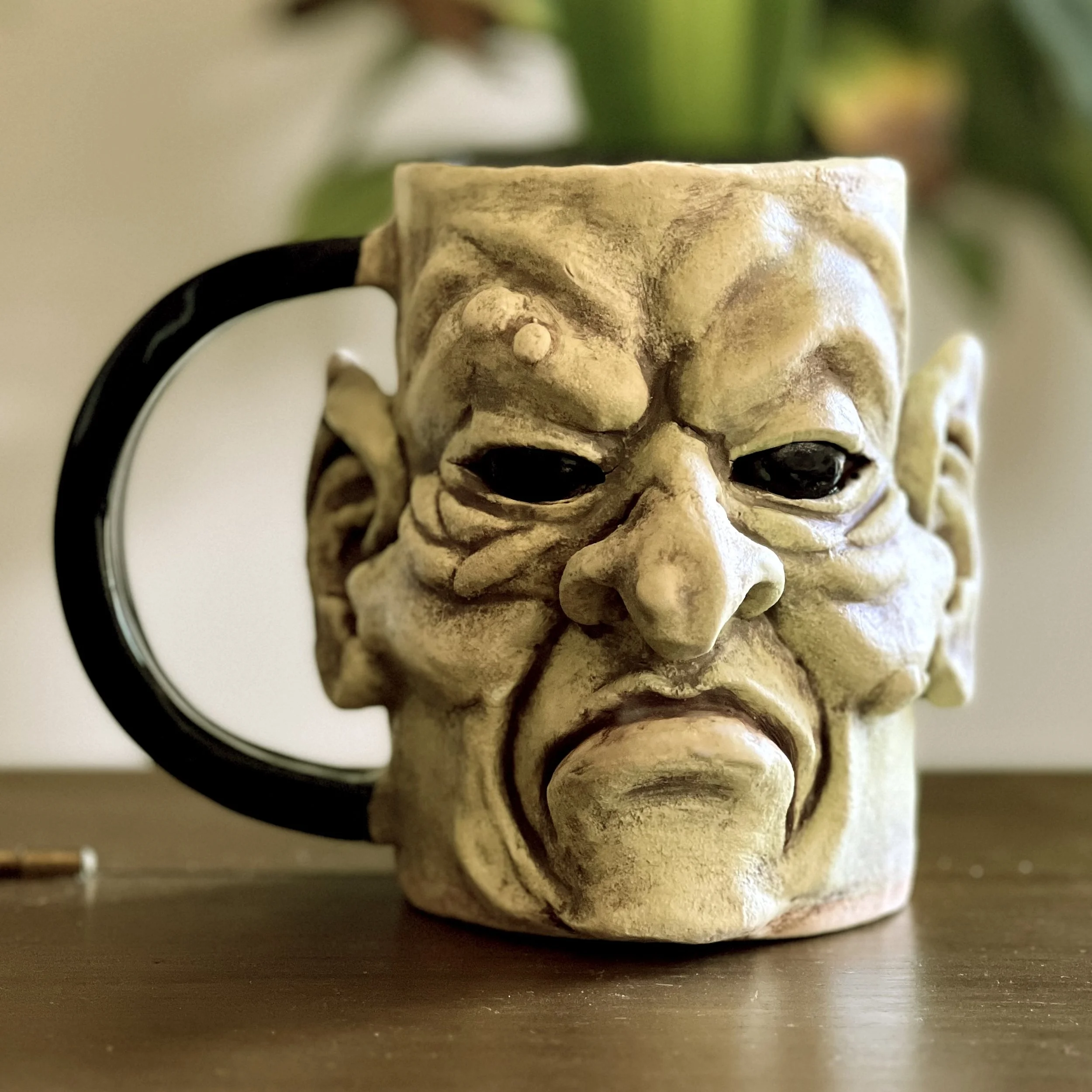 Meet our latest Coffee Goblin, Slurg. Slurg was bitter from birth. While most Coffee Goblins are born with proud horns, his head was smooth as a polished pebble. From his first rank breath, Slurg felt the stares, the whispers, the snickers that bubbled louder than any percolating kettle. Without horns, he was branded “the half-brewed,” and so he grew a sharp-tongued and perpetual scowl to compensate. Now, he stomps through mornings with a bitter glare, hurling insults at weak coffee and strong goblins alike, determined to prove that even the hornless can take the heat and snarl their way into legend.